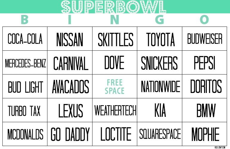 The big game is coming up! If you are anything like me, I half pay attention to the game and mostly pay attention to the food. The commercials are the thing that usually draws my attention, so I thought it would be fun to make a Superbowl commercial bingo game.